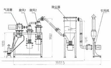 工藝流程 技術(shù)參數(shù) 型號(hào) 入料粒度 (mm) 產(chǎn)品粒度d97 (μm) 生產(chǎn)能力 (kg/h) 空氣耗量 (m3/min) 空氣壓力 (Mpa)