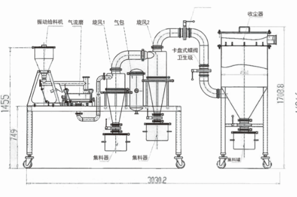 ? ? ? ?壓縮空氣通過(guò)均勻地分布在粉碎室周圍并與粉碎室半徑方向成一定角度的噴嘴,把壓強(qiáng)能轉(zhuǎn)換成速度能,產(chǎn)生高速氣流,使通過(guò)加料噴射器連續(xù)均勻地進(jìn)入粉碎室的粉體物料顆粒,互相激烈碰撞、摩擦及粉碎室內(nèi)腔表面碰撞,從而達(dá)到超微粉碎的目的。
